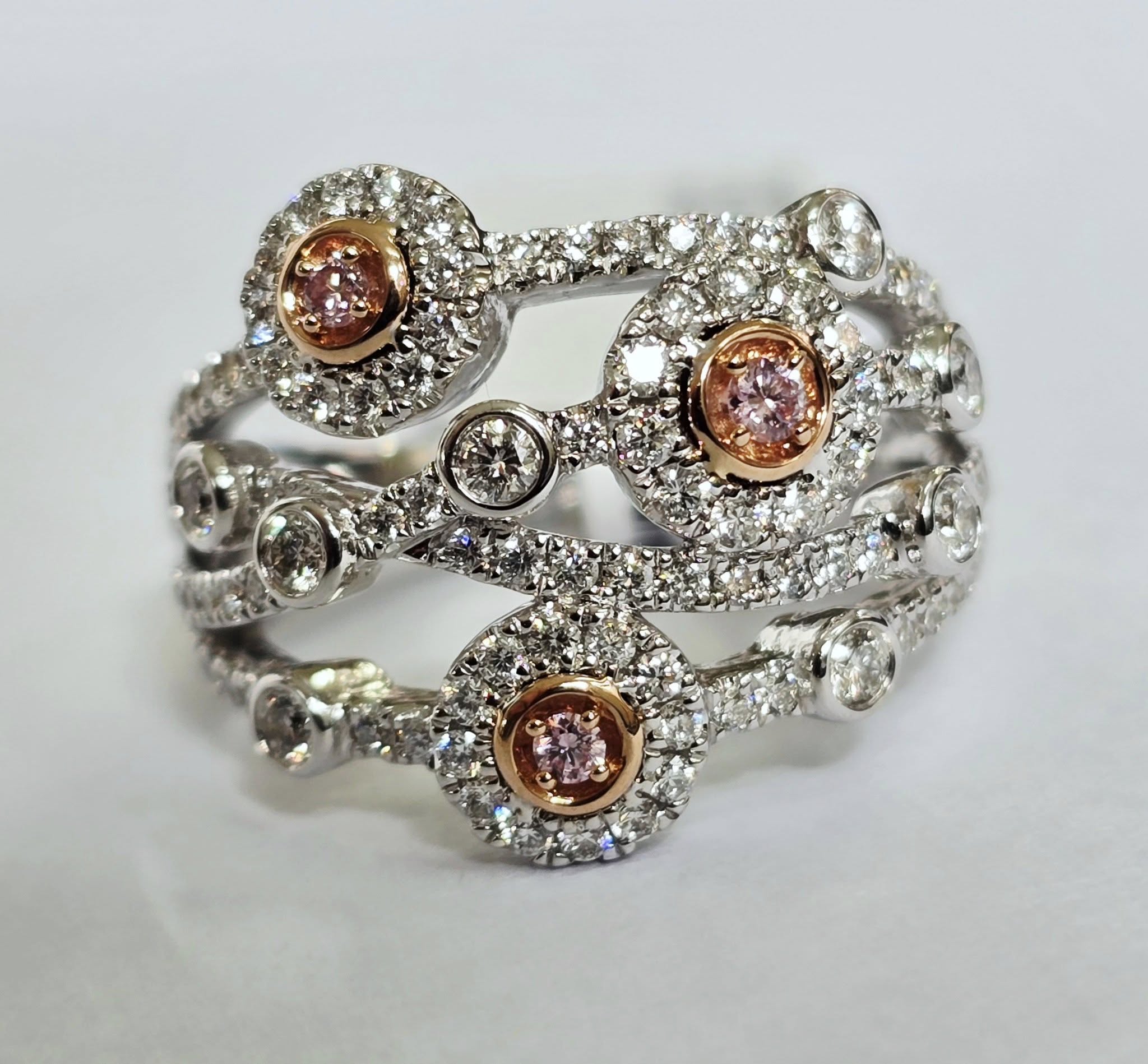 A dazzling design set with rare Argyle Pink Diamonds, this ring is pure artistry in motion. Paired with brilliant white diamonds, the contrast creates a breathtaking sparkle that’s impossible to ignore.