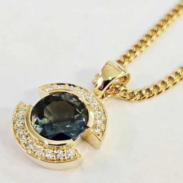This striking ring showcases a rare hexagon-cut Australian sapphire, a gemstone celebrated for its deep, shifting shades of green. Perfectly balanced by a cluster of sparkling white diamonds, it’s a design that radiates both sophistication and individuality.